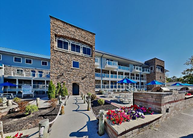 There will be an elevator installed for the 2017 season, so guests with mobility issues will find that useful. There are about 8 steps to get up to the first level condos otherwise, and another 2 flights of stairs to get up to the second level condos.