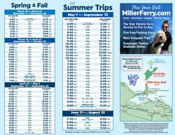 Miller Ferry is the only way to bring your car up to the island with you. For vehicle guidelines and more detailed information, including a downloadable brochure, be sure to check out their website. During the summer months, the ferries leave every half hour from 7:00 AM to 7:00 PM daily, with additional trips in the evening on weekends and during certain peak days. The Miller Ferry website is also the place to stay up-to-date with the Miller Ferry schedule.